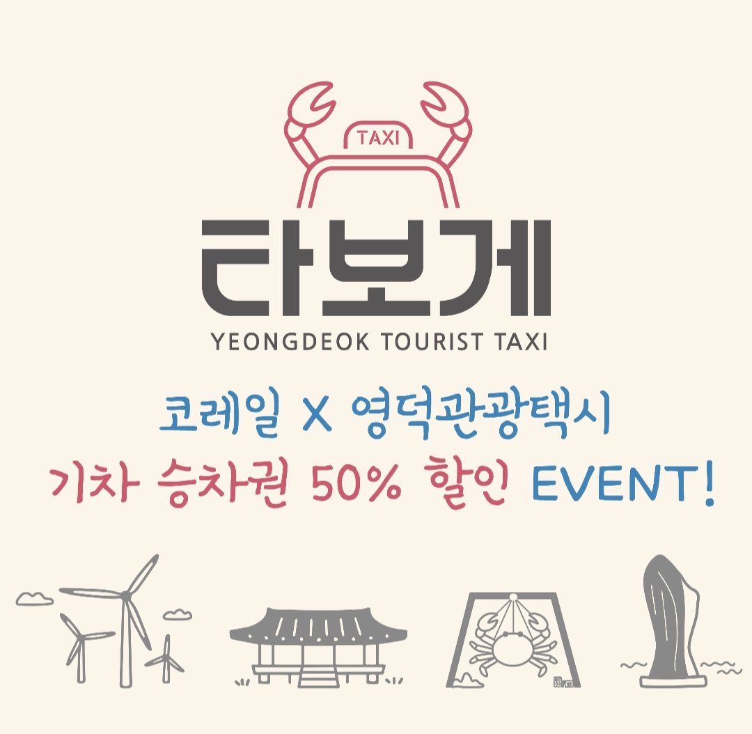 무더운 여름, 시원한 바다와 여유로운 자연이 있는 곳으로 훌쩍 떠나고 싶으신가요? 그렇다면 지금이 바로 영덕 여행의 적기! 코레일과 영덕군이 함께 준비한 관광택시 '타보게' 할인 이벤트를 이용하면 부담 없이, 더욱 편하게 경북 영덕을 여행할 수 있어요.