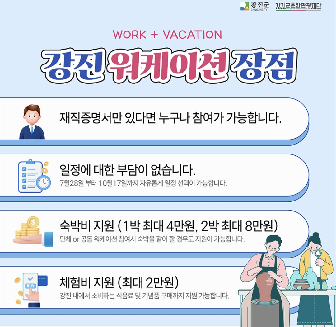 이런 다양한 체험을 통해 업무 중간중간 재충전의 시간을 가질 수 있어 2025 강진 워케이션이 더욱 특별해질 거예요.