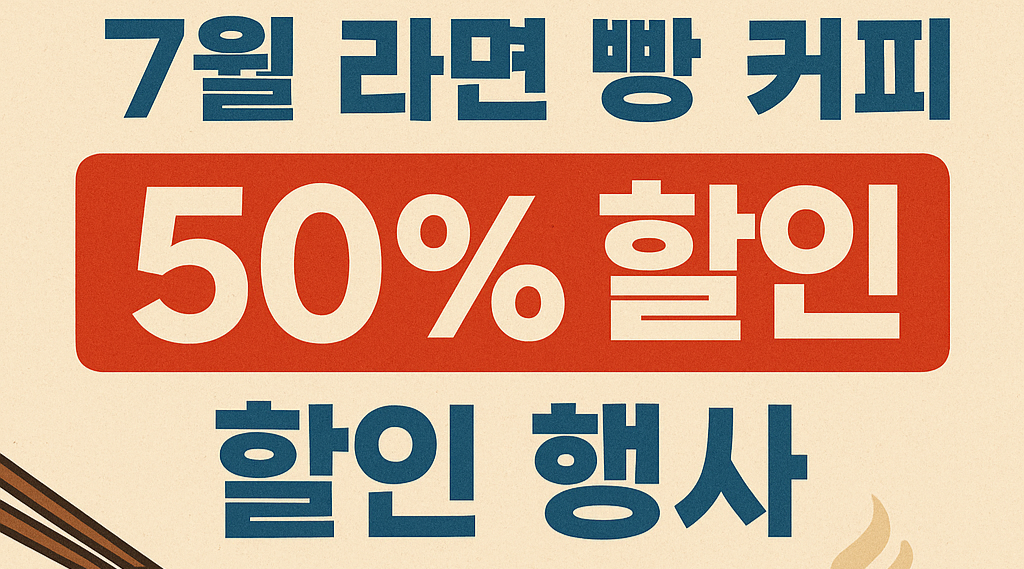 7월 라면 빵 커피 50% 할인행사로 식탁을 더 풍성하게 채워보세요!